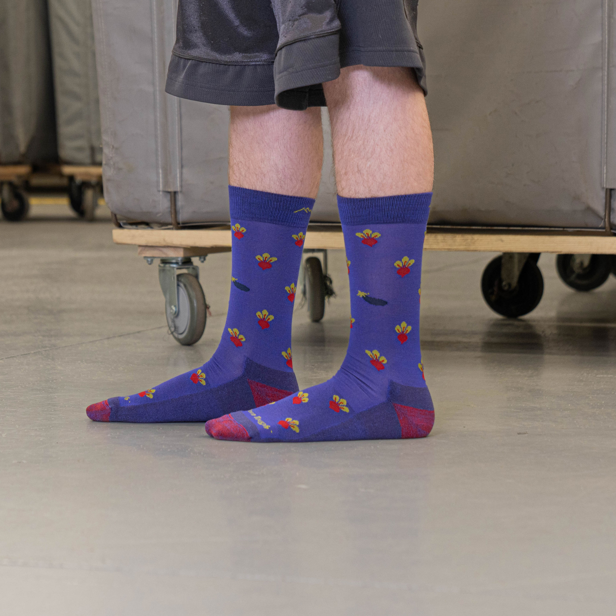 Spice up your wardrobe with lightweight Merino in red and garden graphite. It beets going barefoot in winter, that’s for sure. The yarns we use to knit them come from our inventory of overstock – raw materials with no defined future. So, we gave them a future in these socks that meet our standards of comfort, durability, and fit, and they are indeed unconditionally guaranteed for life. What’s not guaranteed is that the limited run of these socks will ever be knit again.